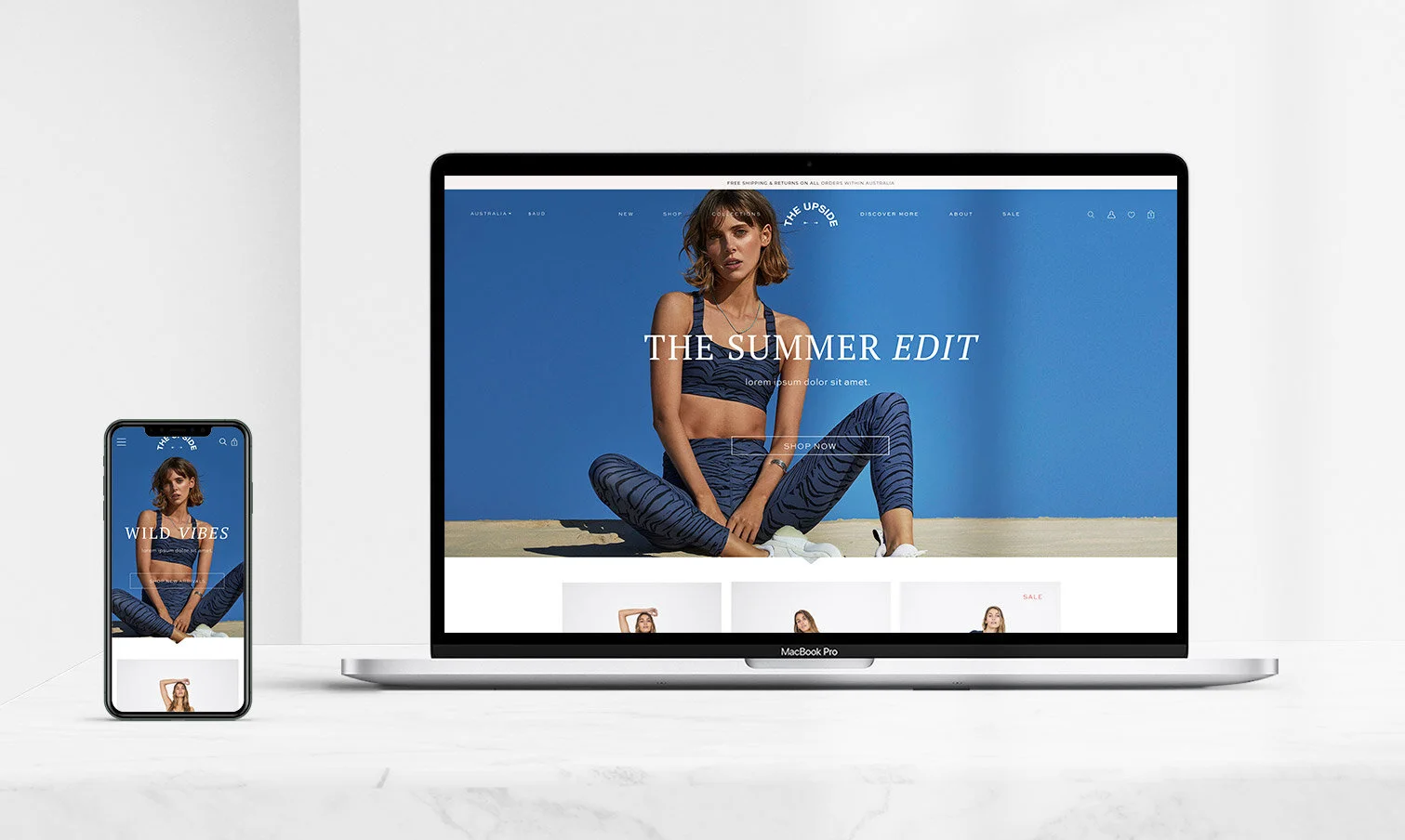 The final designs for TheUpside.com delivered a cohesive, design-forward shopping experience that balanced elegant aesthetics with intuitive commerce functionality. The site experience was built around two primary journeys: lightweight exploration through visually rich collections, and a clean, confident purchasing flow on the PDP. Across mobile and desktop, the designs introduced a modern mega menu, refined product listing pages, and a streamlined shopping cart, all supported by a comprehensive style guide. Product detail pages were intentionally kept straightforward but sophisticated, prioritizing large imagery, clear sizing and comparison information, and minimal visual clutter. Editorial layouts, curated photography, and thoughtful typography created a premium, magazine-like feel throughout the homepage and collections while maintaining a fast, easy-to-use checkout path.
